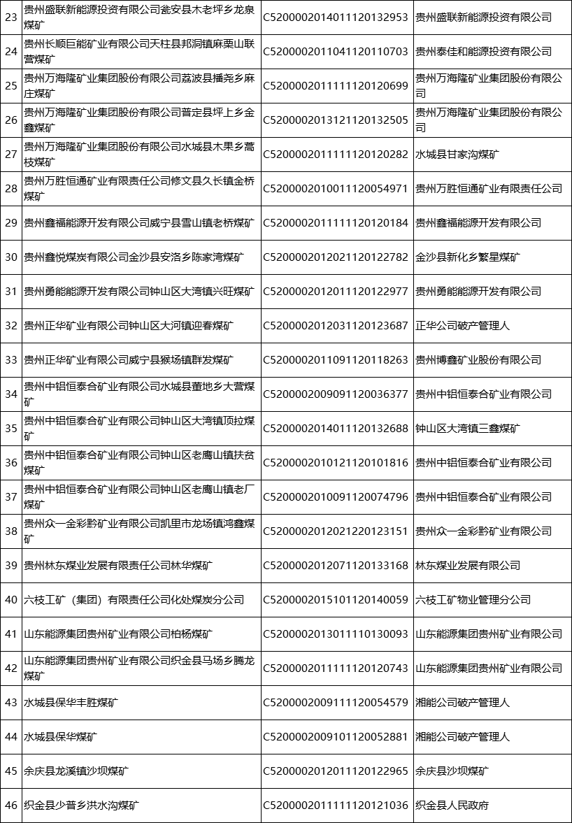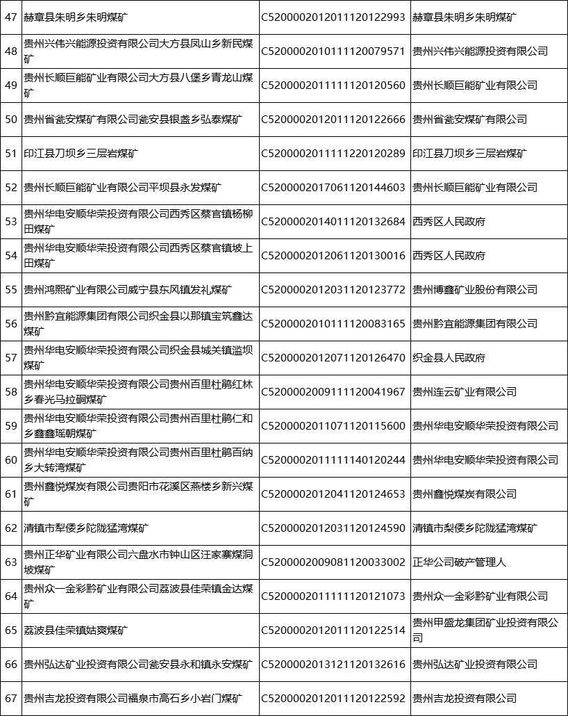 公告指出,根據(jù)《礦產(chǎn)資源開采登記管理辦法》《國(guó)土資源部關(guān)于完善礦產(chǎn)資源開采審批登記管理有關(guān)事項(xiàng)的通知》《自然資源部辦公廳關(guān)于政策性關(guān)閉礦山采礦許可證注銷有關(guān)工作的函》《貴州省自然資源廳 貴州省能源局關(guān)于已關(guān)閉煤礦限期注銷采礦許可證的公告》,對(duì)已按照《省人民政府關(guān)于煤炭工業(yè)淘汰落后產(chǎn)能加快轉(zhuǎn)型升級(jí)的意見》(黔府發(fā)〔2017〕9號(hào))、《省人民政府辦公廳關(guān)于轉(zhuǎn)發(fā)省能源局等部門貴州省煤礦企業(yè)兼并重組工作方案(試行)的通知》(黔府辦發(fā)〔2012〕61號(hào))要求完成關(guān)閉的發(fā)耳礦區(qū)水城縣玉舍(西井)煤礦等96個(gè)煤礦予以注銷采礦許可證并公告,責(zé)任主體要履行礦山關(guān)閉后相關(guān)生態(tài)修復(fù)等法定義務(wù),對(duì)于未按承諾完成法定義務(wù)的納入失信聯(lián)合懲戒。