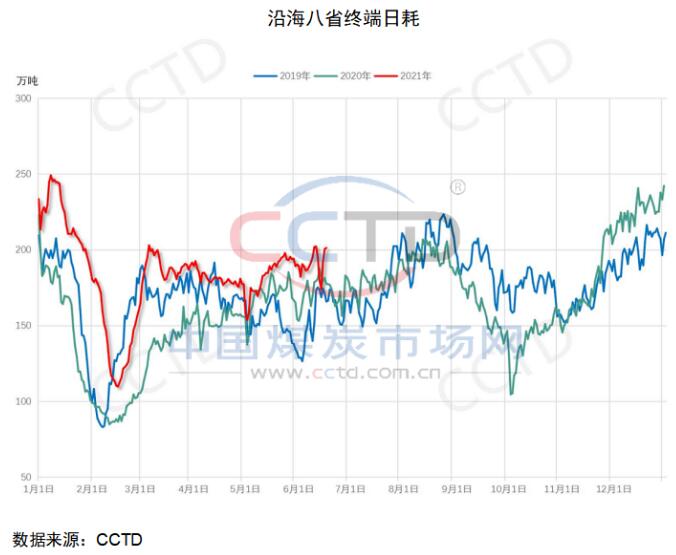 工業(yè)品更側(cè)重看需求,2020-2021年在全球大放水的前提下,各國(guó)經(jīng)濟(jì)都開始步入復(fù)蘇進(jìn)程,特別是我們國(guó)家控制疫情比較好,經(jīng)濟(jì)率先恢復(fù),2021年宏觀經(jīng)濟(jì)開始從經(jīng)濟(jì)復(fù)蘇步入過(guò)熱階段,煤炭需求增長(zhǎng)勢(shì)頭強(qiáng)勁。5月至今,終端用戶動(dòng)力煤消費(fèi)仍然能保持正增長(zhǎng),十分難得。畢竟去年需求端嚴(yán)重被擠壓,在5月又集中釋放的。能繼續(xù)同比增長(zhǎng),可想而知需求有多么的強(qiáng)。