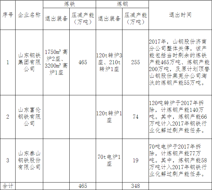 2019年山東省去產(chǎn)能目標:壓鐵465萬噸 鋼348萬噸